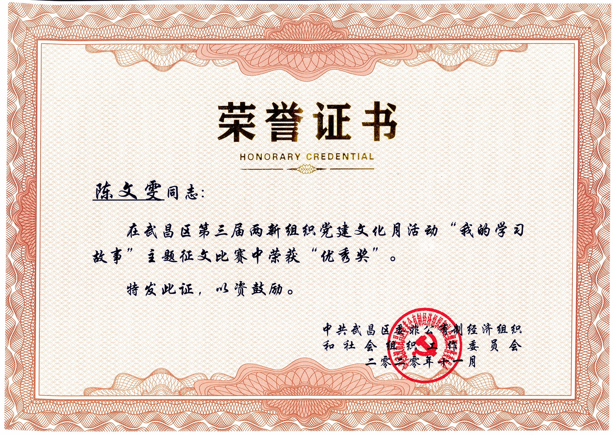 熱烈祝賀公司黨支部榮獲武昌區(qū)“我的學(xué)習(xí)故事”主題征文比賽優(yōu)秀獎(jiǎng)!
