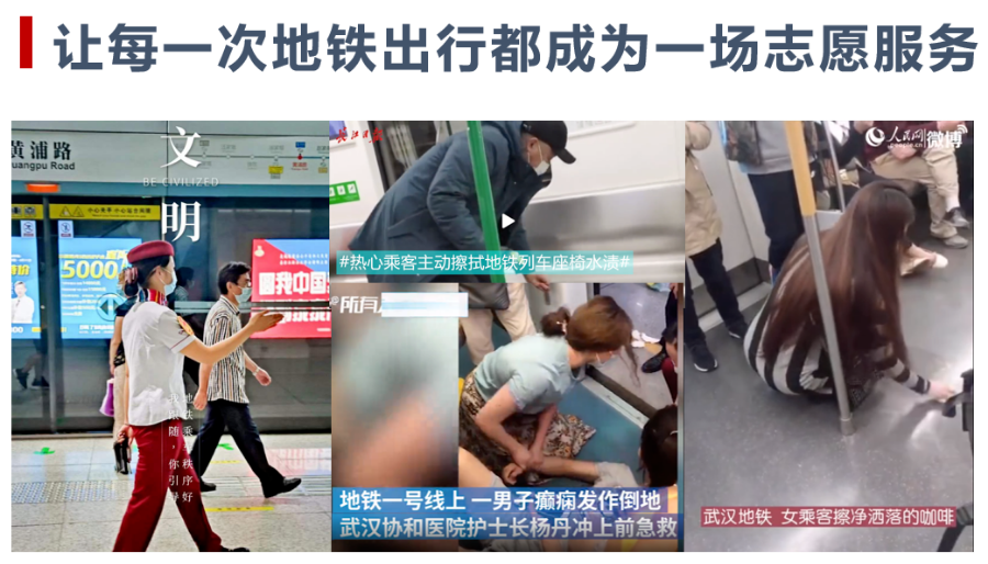 2015年底,武漢地鐵運營公司以“提升地鐵車廂的文明指數”為出發點,面向社會廣泛招募乘客志愿者,并探索性啟動了“文明地鐵,愛心伴乘”項目。