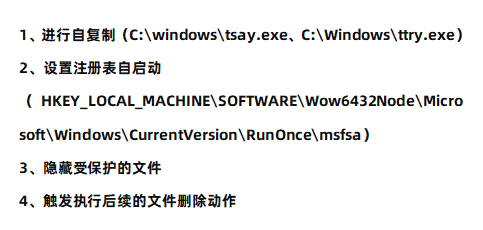 該病毒最早的出現時間約在2009年,由于病毒編碼中時間換算錯誤,延后了10余年才觸發后續行為,incaseformat 蠕蟲病毒運行后,將會進行以下操作:
