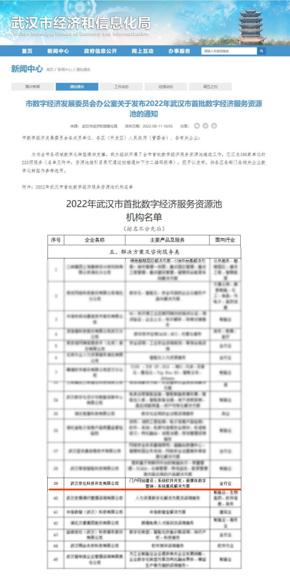 ? ? ? ?為向全市各領域數字化轉型提供支撐,武漢市數字經濟發展委員會辦公室組織開展了全市首批數字經濟服務資源池遴選工作。經企業申報、區經信部門推薦、專家評審及征求各有關單位意見后,京倫科技成功入選“解決方案及咨詢服務類”資源名單。
