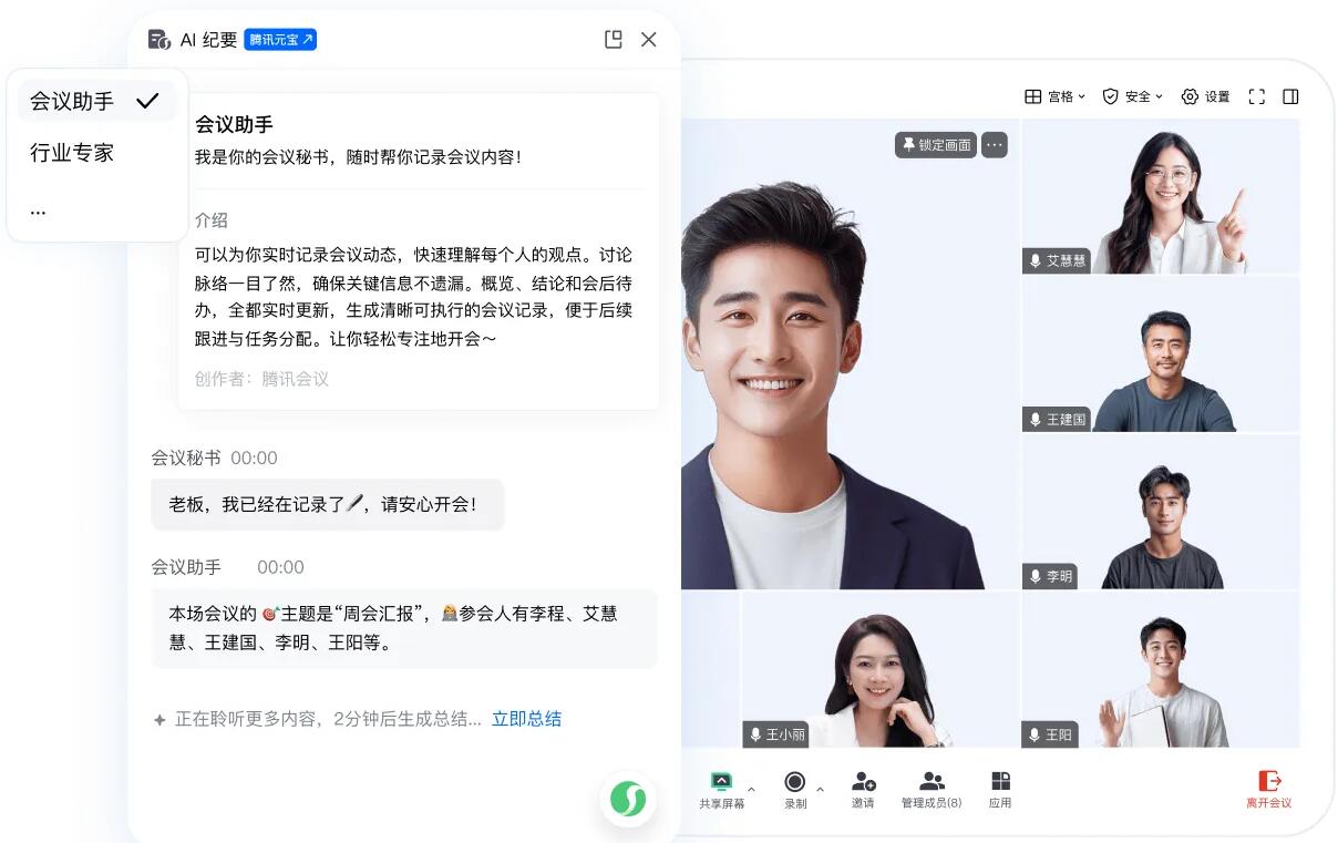 未來上線多元AI角色,可根據會議性質進行個性化選擇。擅長精煉總結的“會議秘書”,擅長戰略洞察的“行業專家”視角等等,通過不同AI角色提供差異化的紀要風格與會議關注重點,讓會議紀要真正貼合參會人的當下需求。