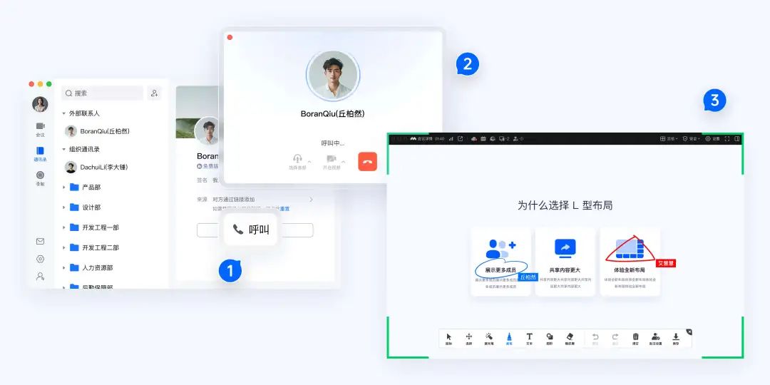 會議當中要拉入新的參會者,也可以直接在通訊錄中發起呼叫,對方接聽即入會,秒級搖人,絲毫不耽誤會議的進度!