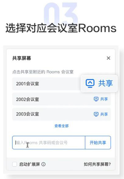 很多重要會(huì)議基本都是線上線下融合模式,過去在線下會(huì)議室開會(huì)需要拉對(duì)方會(huì)議室Rooms入會(huì)時(shí)往往需要互傳一長(zhǎng)串會(huì)議號(hào),然后在大屏上手動(dòng)輸入后入會(huì),十分繁瑣還容易出錯(cuò)。