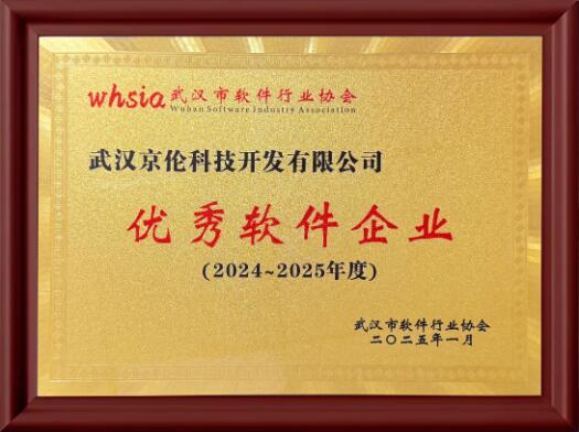 ? ? ? ?武漢京倫科技開發有限公司經過層層選拔,嚴格評選,被武漢市軟件行業協會授予2024-2025年度“優秀軟件企業”稱號。