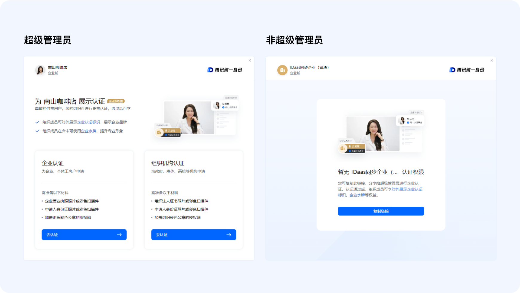 通過認證后的企業,所屬該企業的成員在資料卡、會中成員列表、水牌向他人展示所屬的企業信息、職位信息等。會中展示企業認證信息,員工還是訪客清晰可辨。不僅提升企業成員開會專業形象,并且防止訪客冒充公司成員。