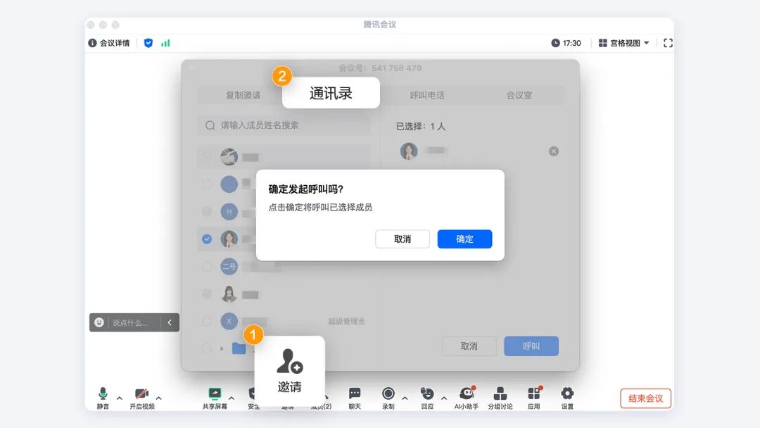 會議開始后,如果有同事還沒入會,或者需要拉新人進來討論時,主持人可以通過組織通訊錄發起呼叫,支持響鈴提醒,能夠迅速喊上相關同事加入會議,再也不怕錯過重要溝通啦!