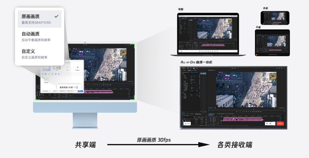 當我們需要共享精密表格、或展現設計圖更豐富細節時,商業版的“原畫畫質+30幀共享”能力,則能夠很好地讓參會者看得更清晰。