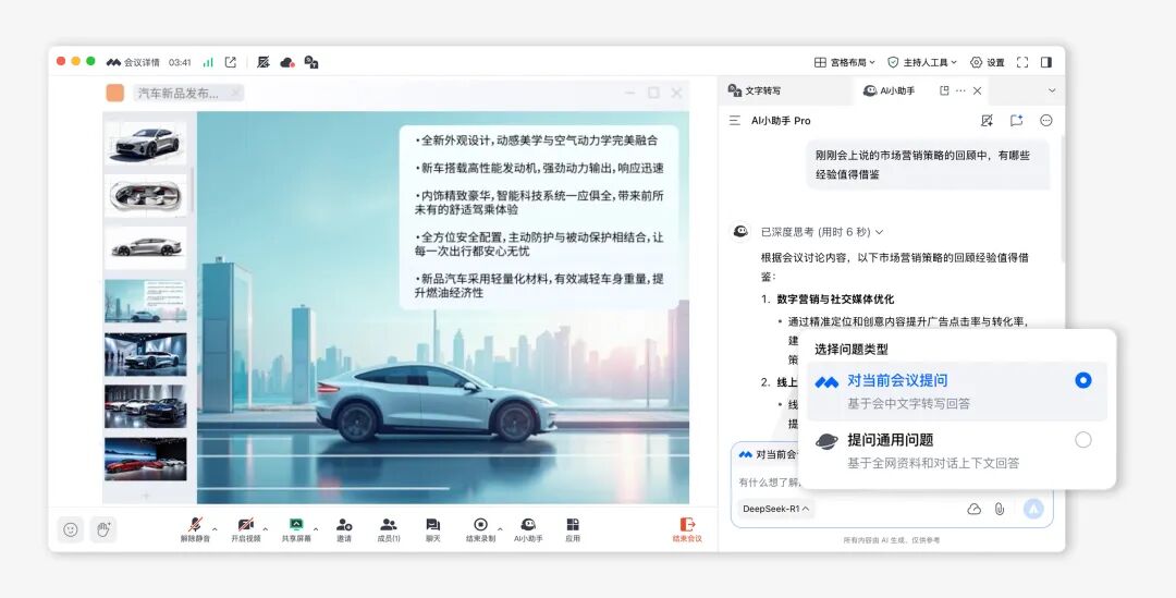?? 讓DeepSeek+Hunyuan雙模型加持的「AI小助手Pro」隨時幫你查資料、補大綱、補創意,把會前會中會后都變成高效生產力時段。
