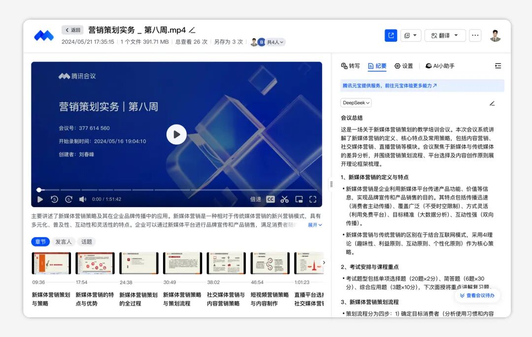 ?? 讓「AI紀要」幫你專門2分鐘一次替你總結進度、在旁邊悄悄讀懂氣氛與態度變化、標記待辦和責任人,還能跳轉元寶繼續追問,讓任務不再“會議結束就失蹤”。