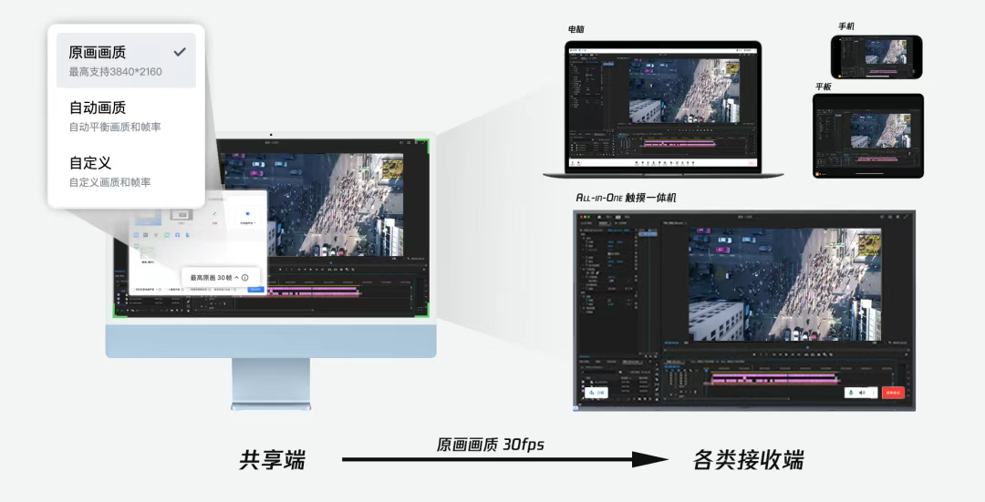 戰略復盤決策會里,當需要共享一個密密麻麻的數據表格,「原畫畫質+30幀」共享屏幕就像給參會者發了高清望遠鏡——數字不糊、細節“咔咔清晰”,遠程也能像圍在同一張桌子前開會。